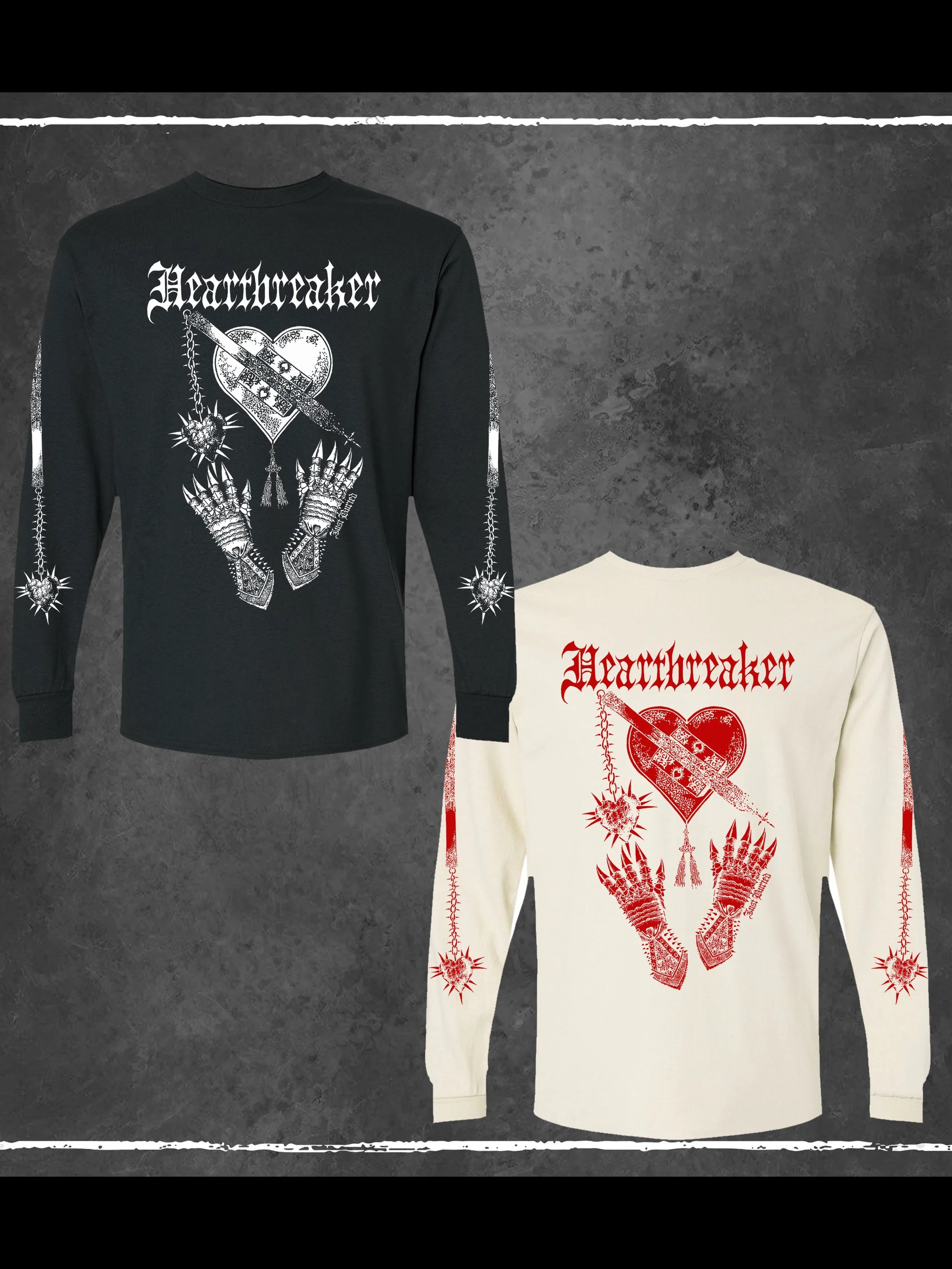 Quality, comfortable Gildan brand long sleeve t-shirt with our signature HeartBreaker design on the front and sleeves, back is plain.