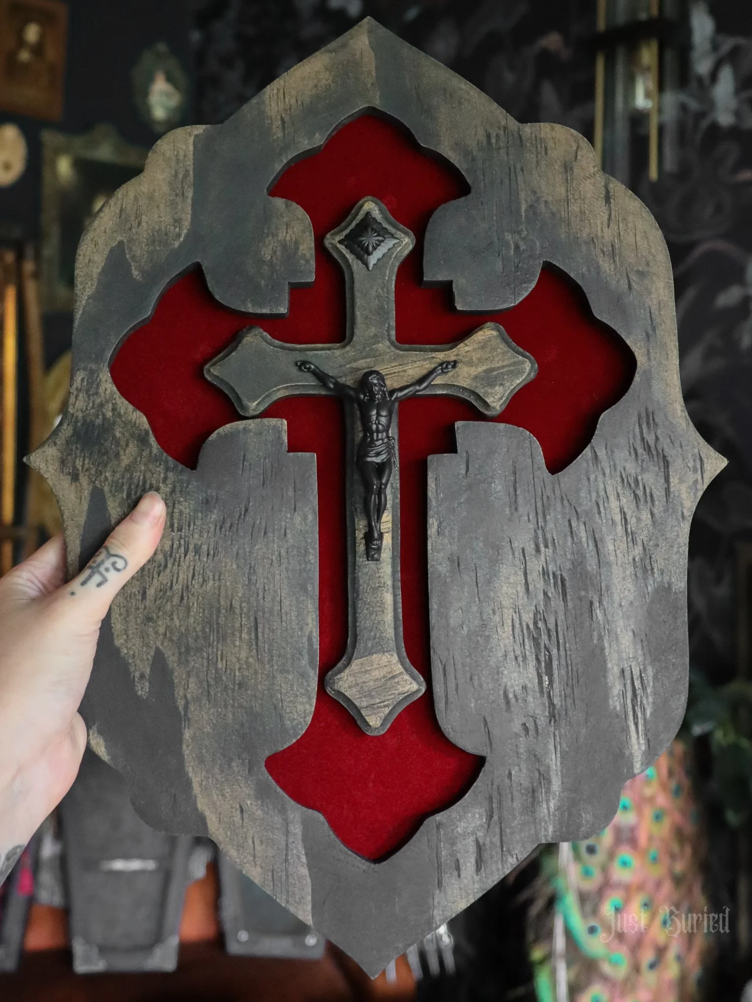 Crucifixes, Cathedrals, & Vampire Stakes Cathedral Cross Shelf $125.00 Only 1 available Cathedral Shadowbox Shelf - Multiple Variants from $135.00 Only 1 available Cathedral Drawbridge Shelf $125.00 Only 1 available Large Ornate Framed Crucifix - Multiple Variants $130.00 Only 2 available Cathedral Wall Hanging - Multiple Variants $65.00 Ornate Framed Crucifix - Multiple Variants $125.00 Large Crucifix Wall Sconce - Multiple Variants $70.00 Only 2 available Dark Stain/Red Crucifix Plaque $135.00 Only 1 available Crucifix Wall Sconce - Multiple Variants $65.00 Only 2 available Sacred Heart XL Vampire stake $85.00 Sold Out Gold Ornate Framed Crucifix $130.00 Only 1 available Ornate Bronze Wooden Crucifix $150.00 Only 1 available Cathedral Wall Mirror $115.00 Only 2 available $30 Mystery Vampire Stake $30.00 Cathedral Crucifix Wall Hanging $115.00 Only 1 available $25 Mystery Vampire Stake $25.00 $20 Mystery Vampire Stake $20.00 Crucifix Incense Holder $30.00 Petite Wall Crucifix $30.00 Cathedral Cross Wall Mirror $115.00 Sold Out Ornate Silver Wooden Crucifix $160.00 Sold Out