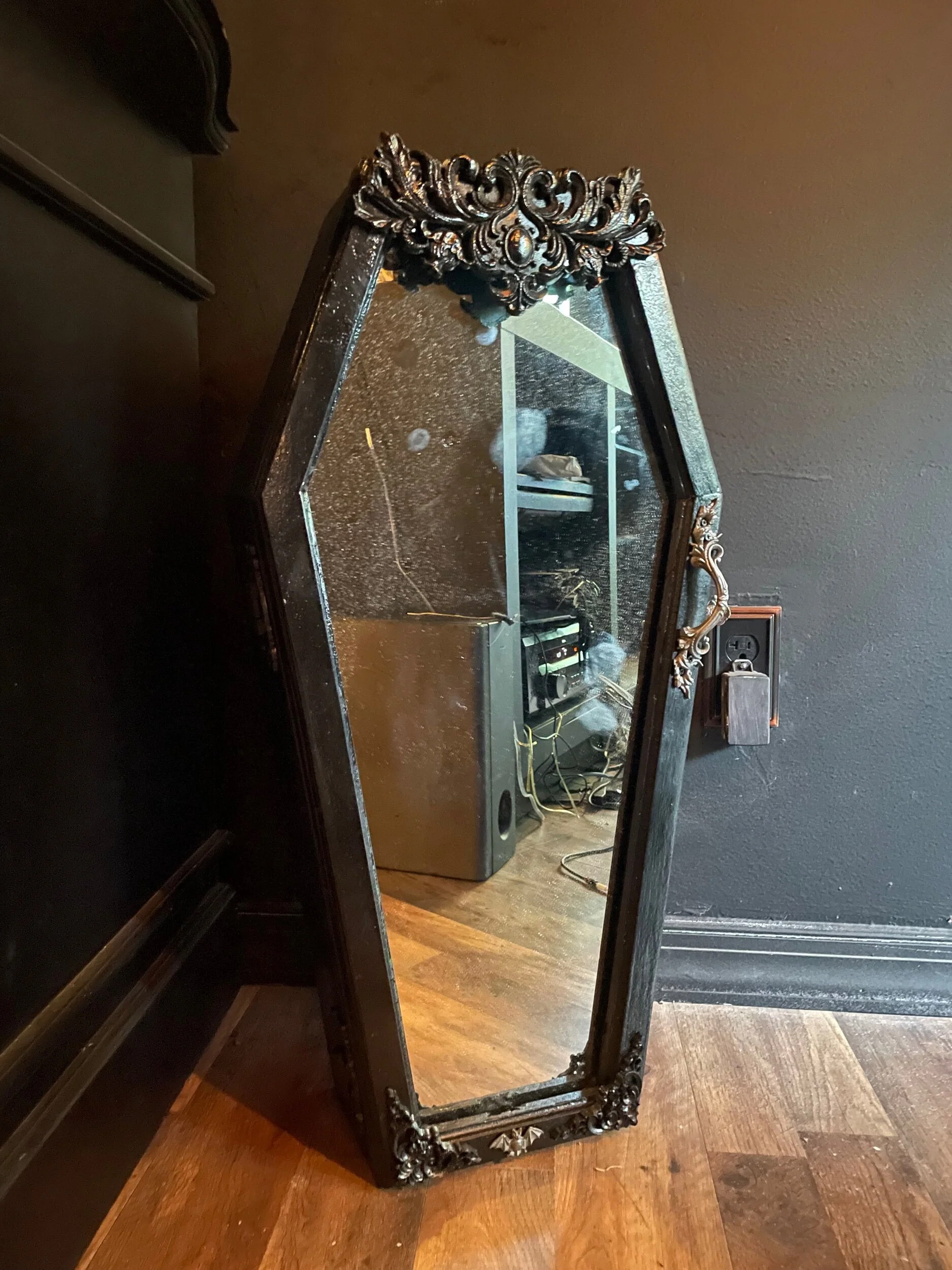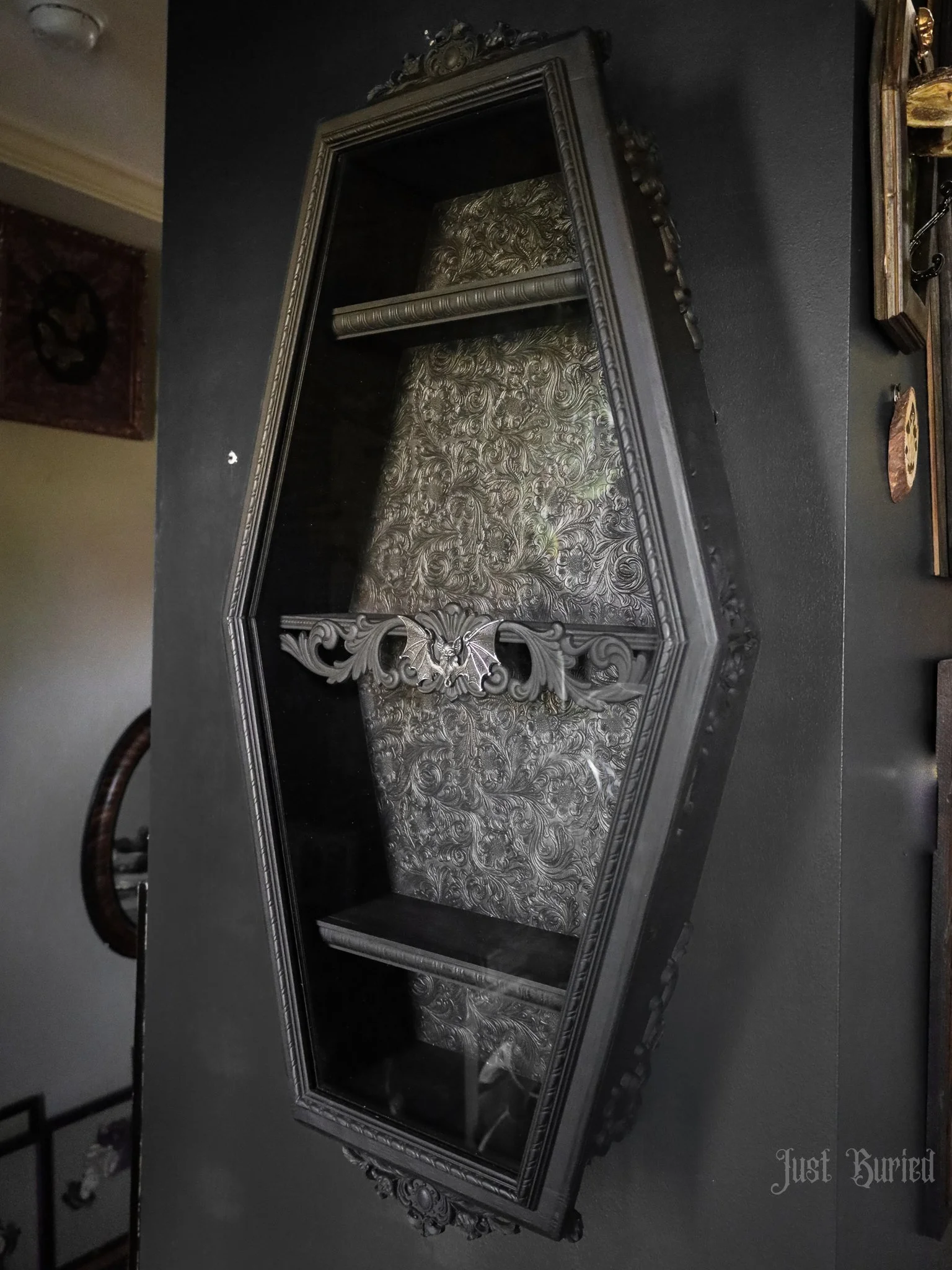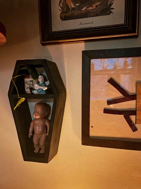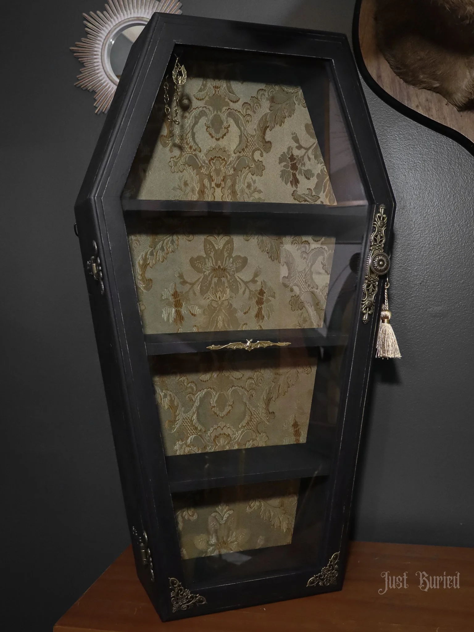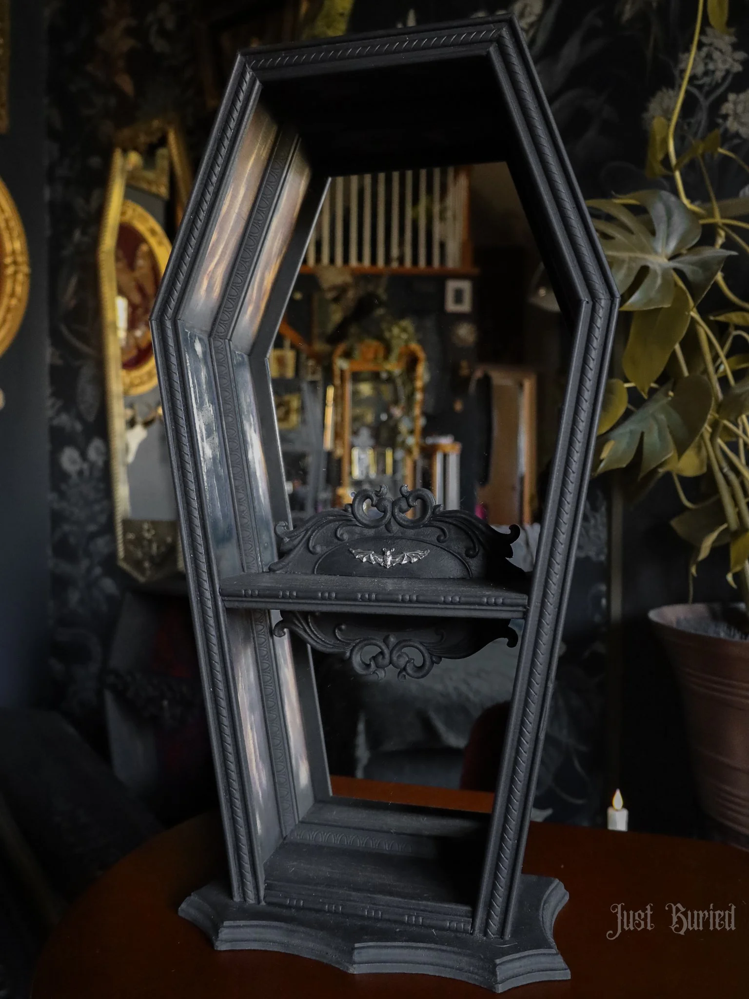 Gallery of our Mirrored Coffin Cabinet Vanities, Shelves, Curio Cabinets, and more!