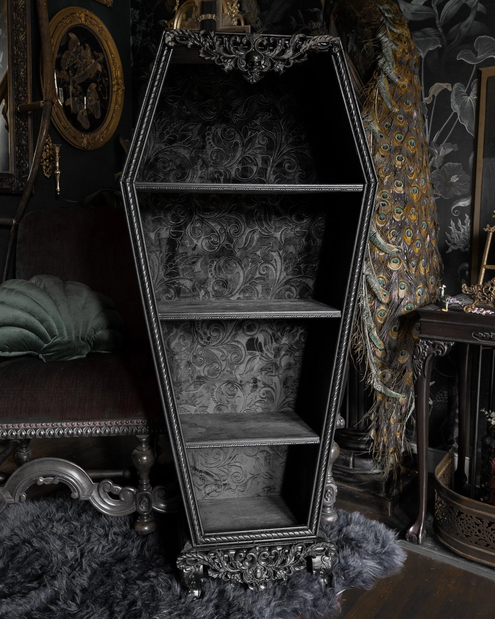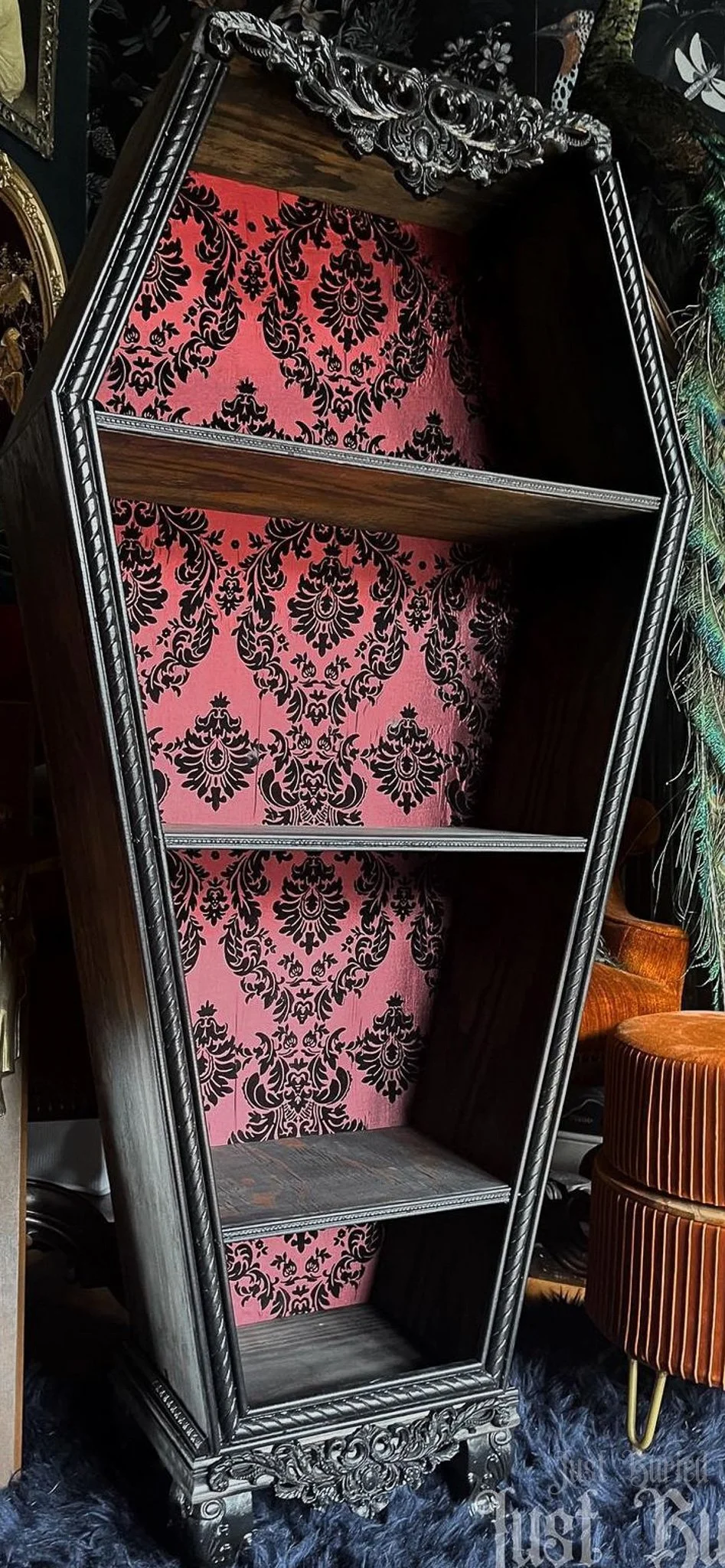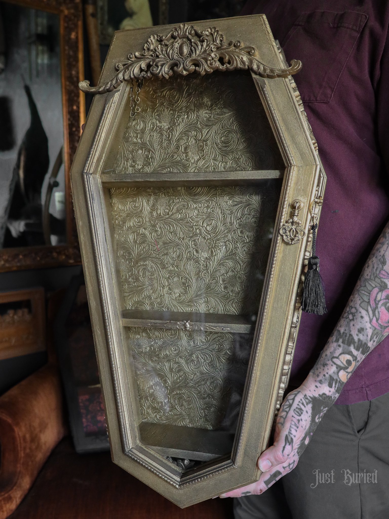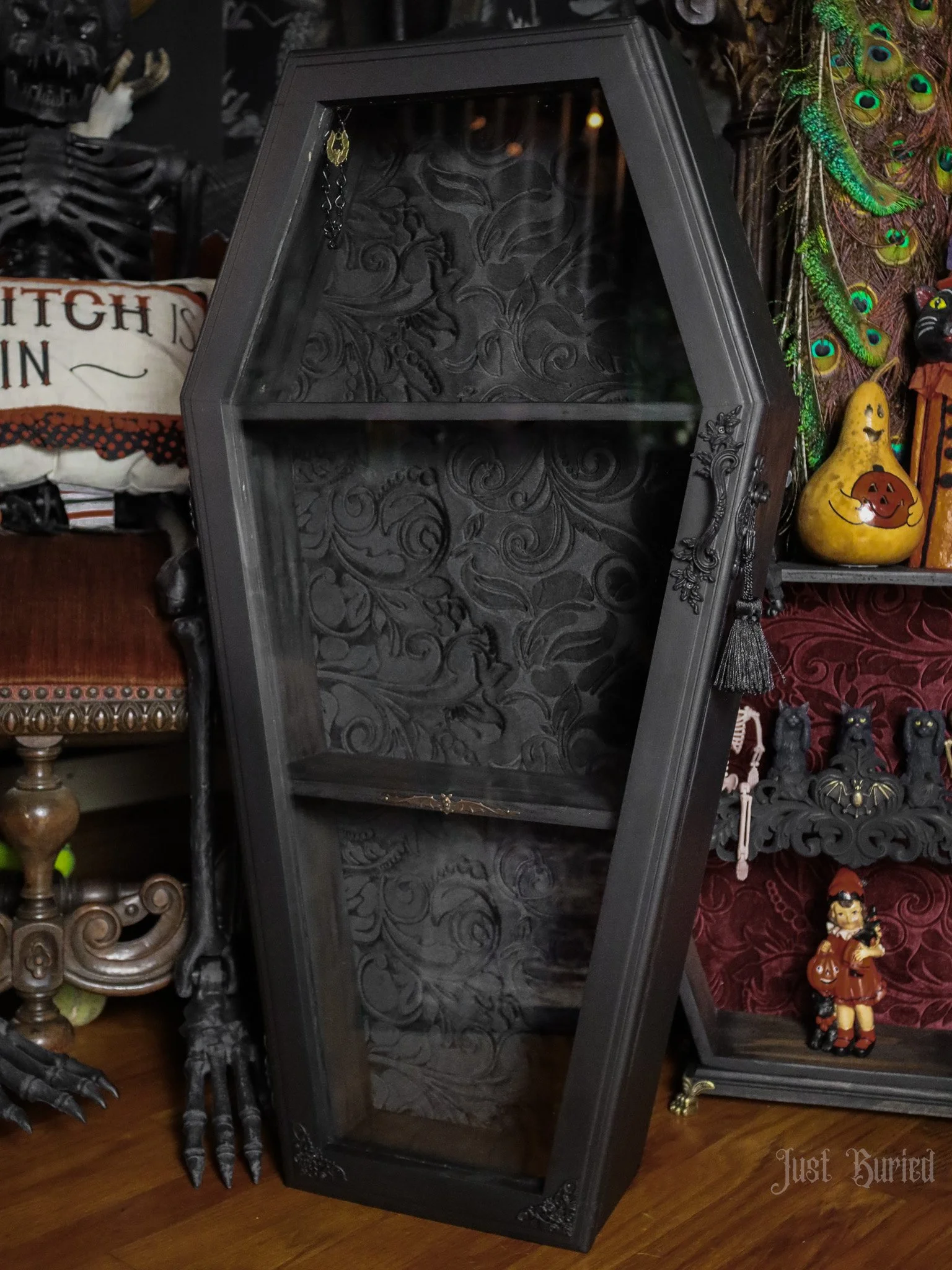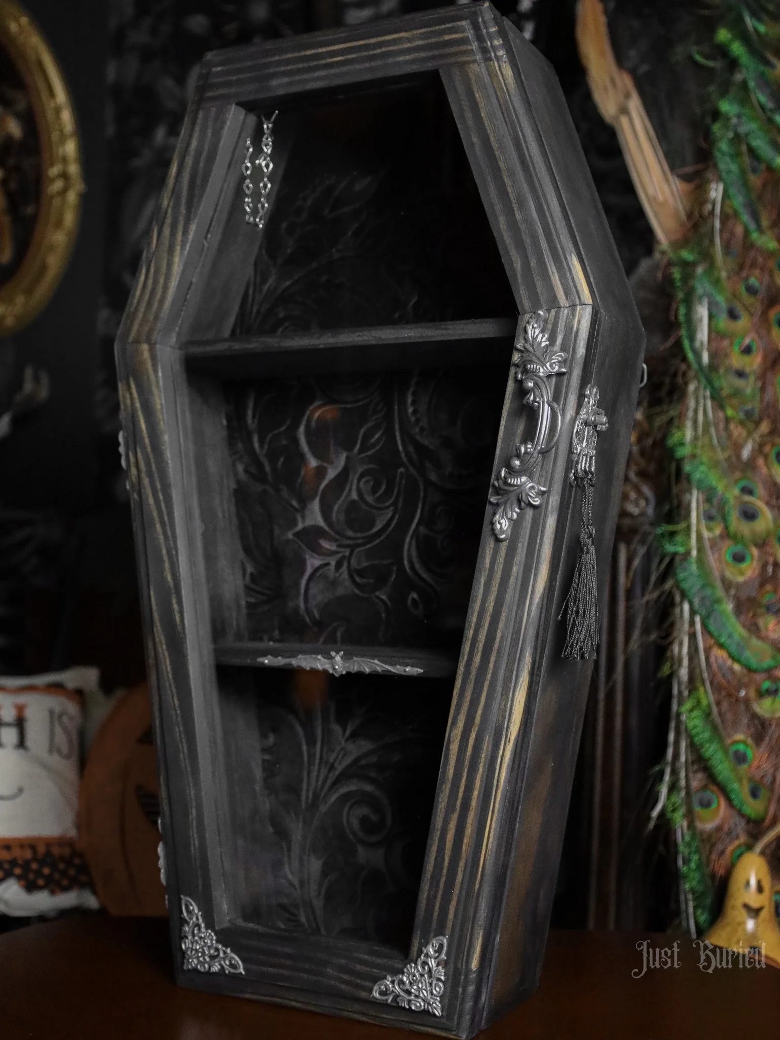 Gallery of our Mirrored Coffin Cabinet Vanities, Shelves, Curio Cabinets, and more!