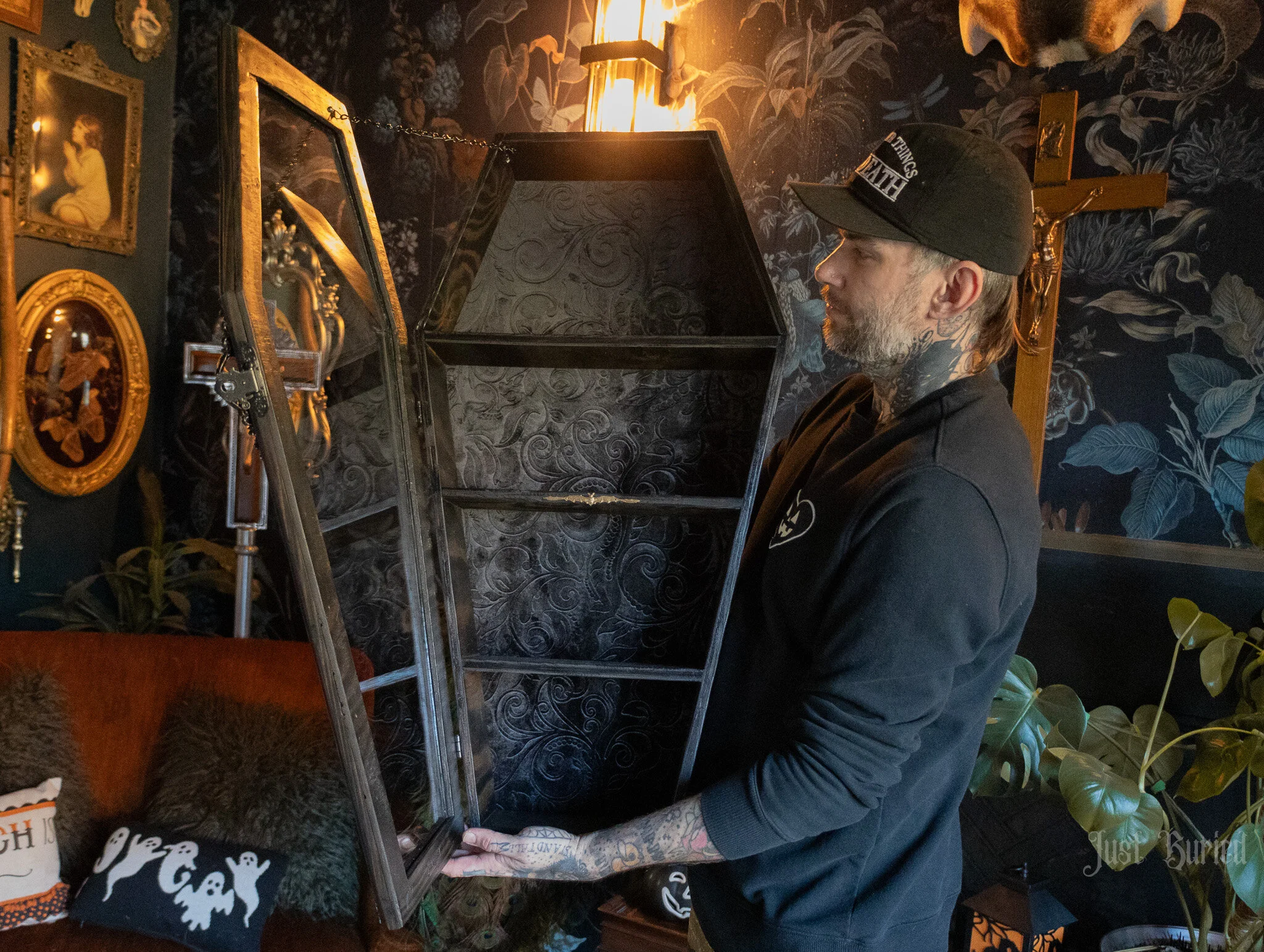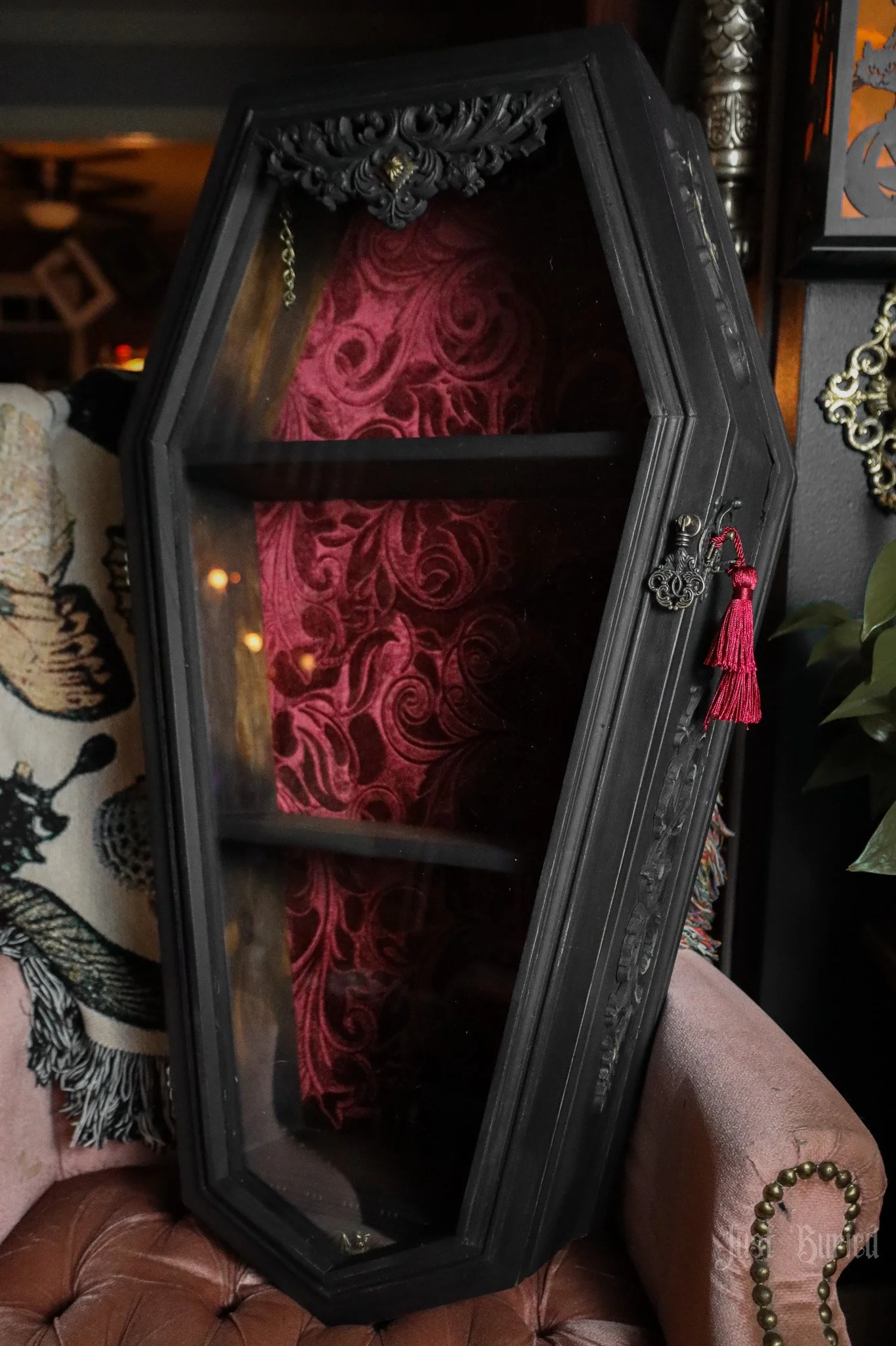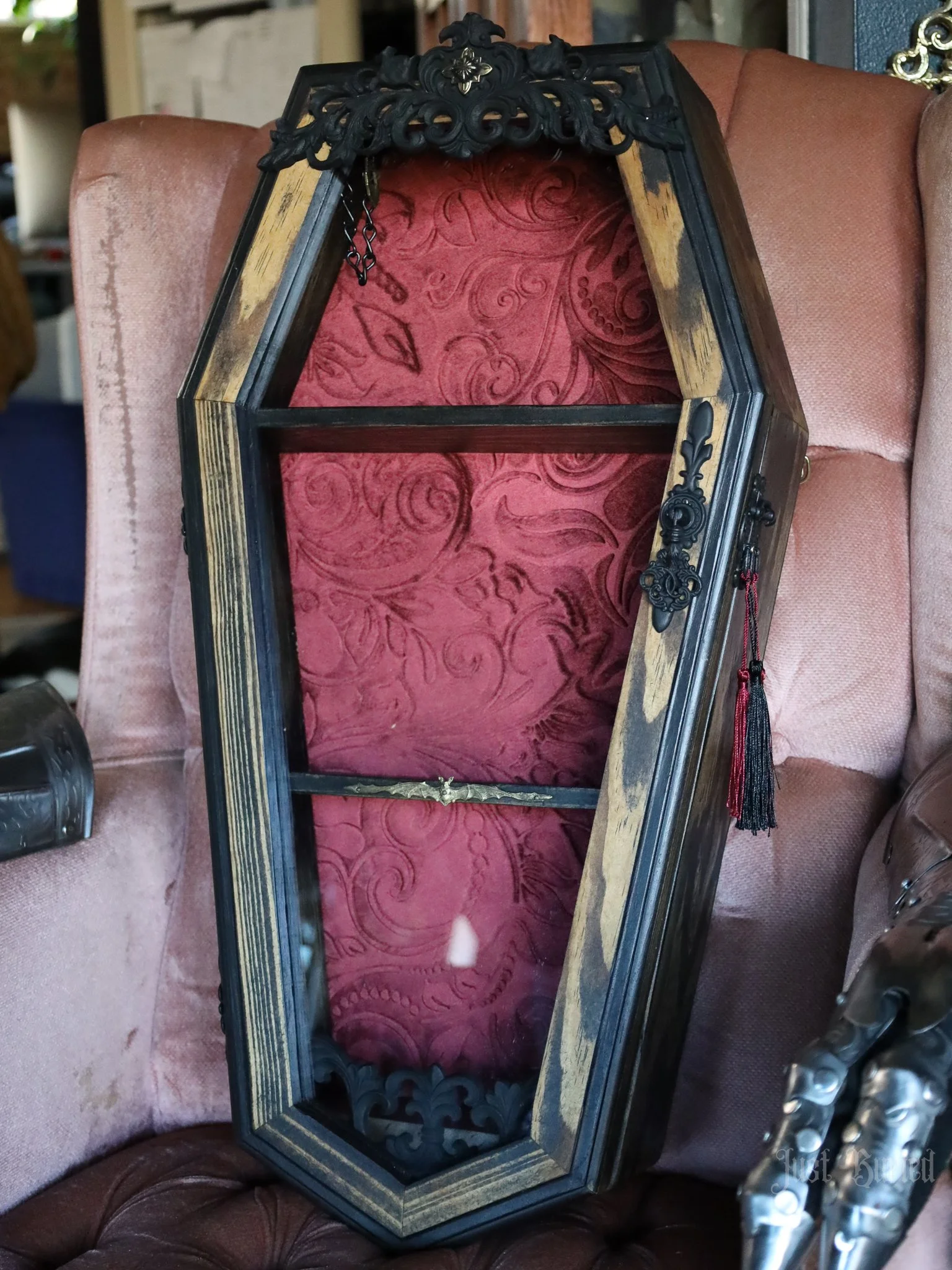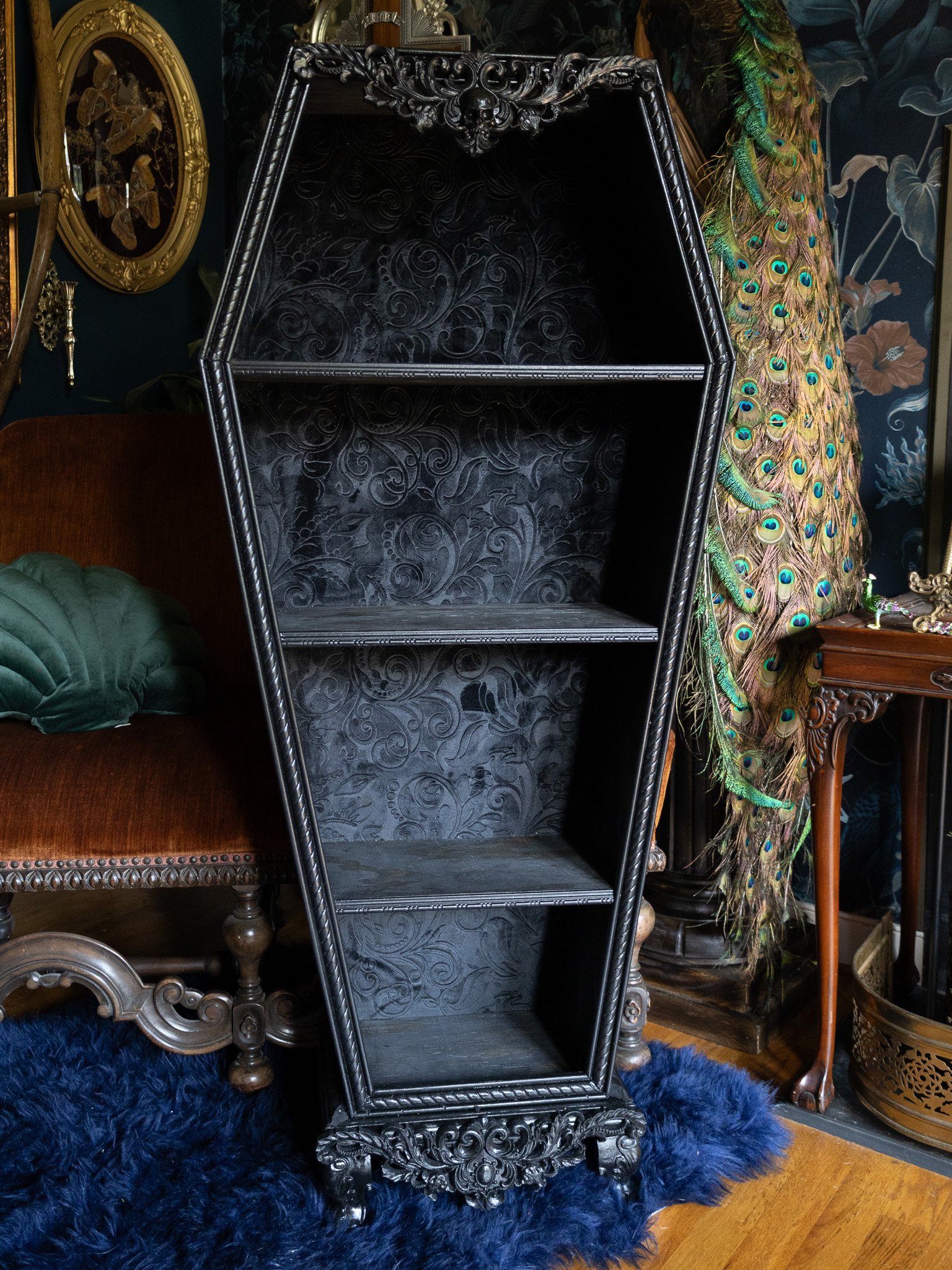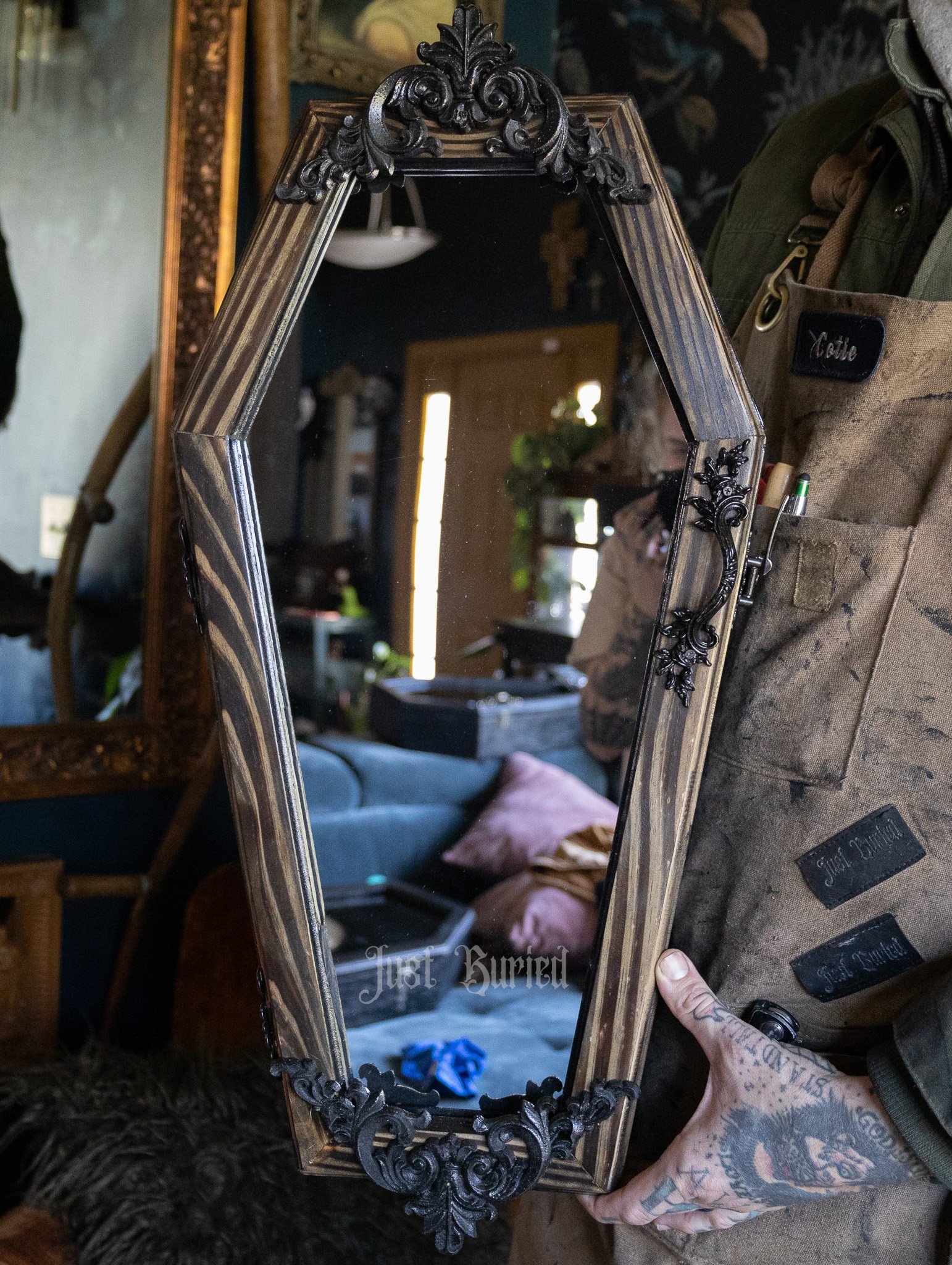 Gallery of our Mirrored Coffin Cabinet Vanities, Shelves, Curio Cabinets, and more!