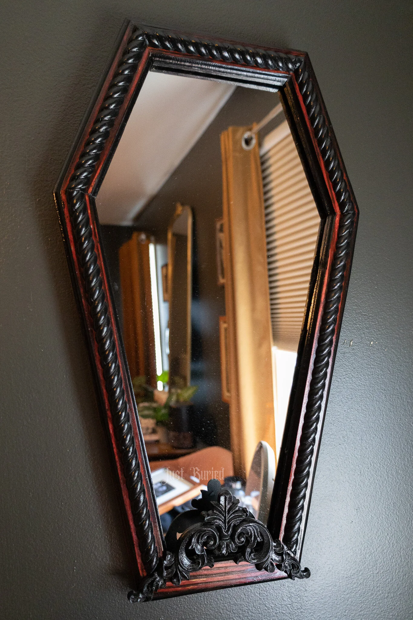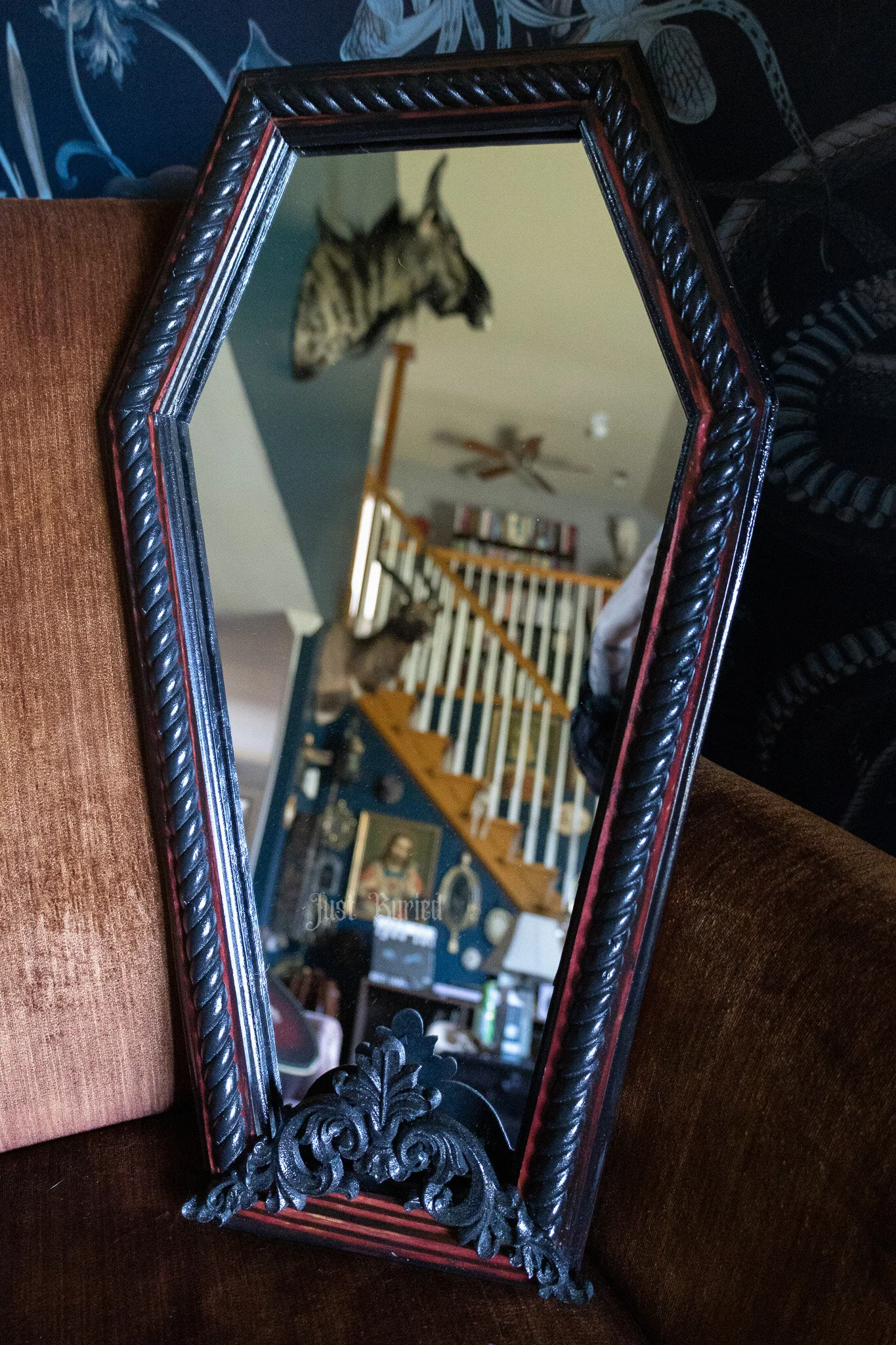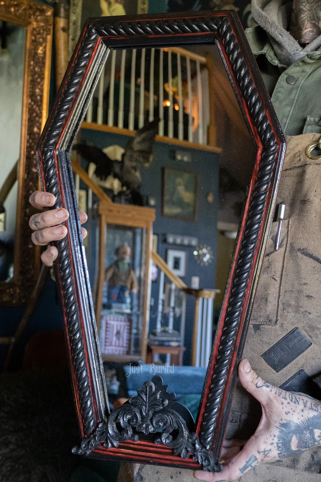 2 Ft Handmade Coffin Mirror, perfect for a unique, spooky wall accent in any tomb.