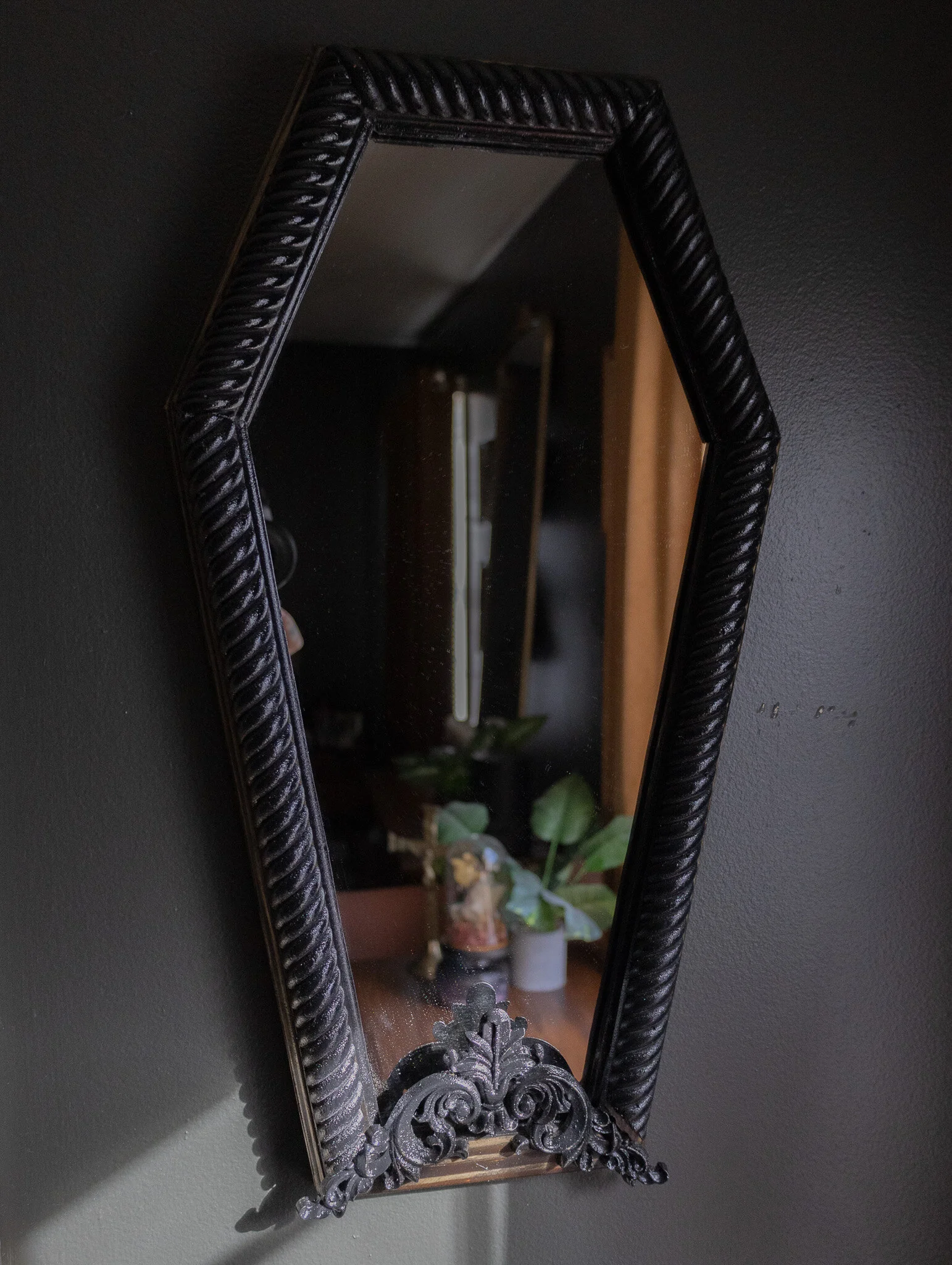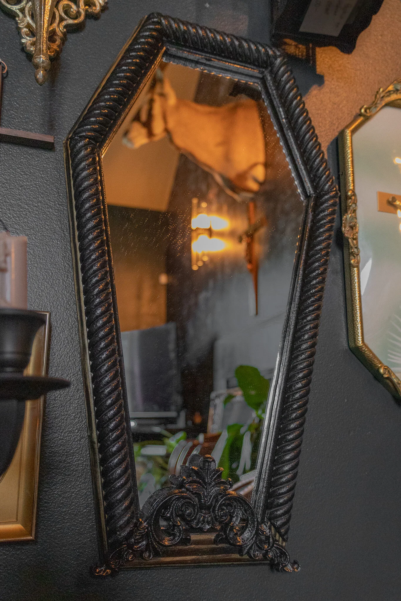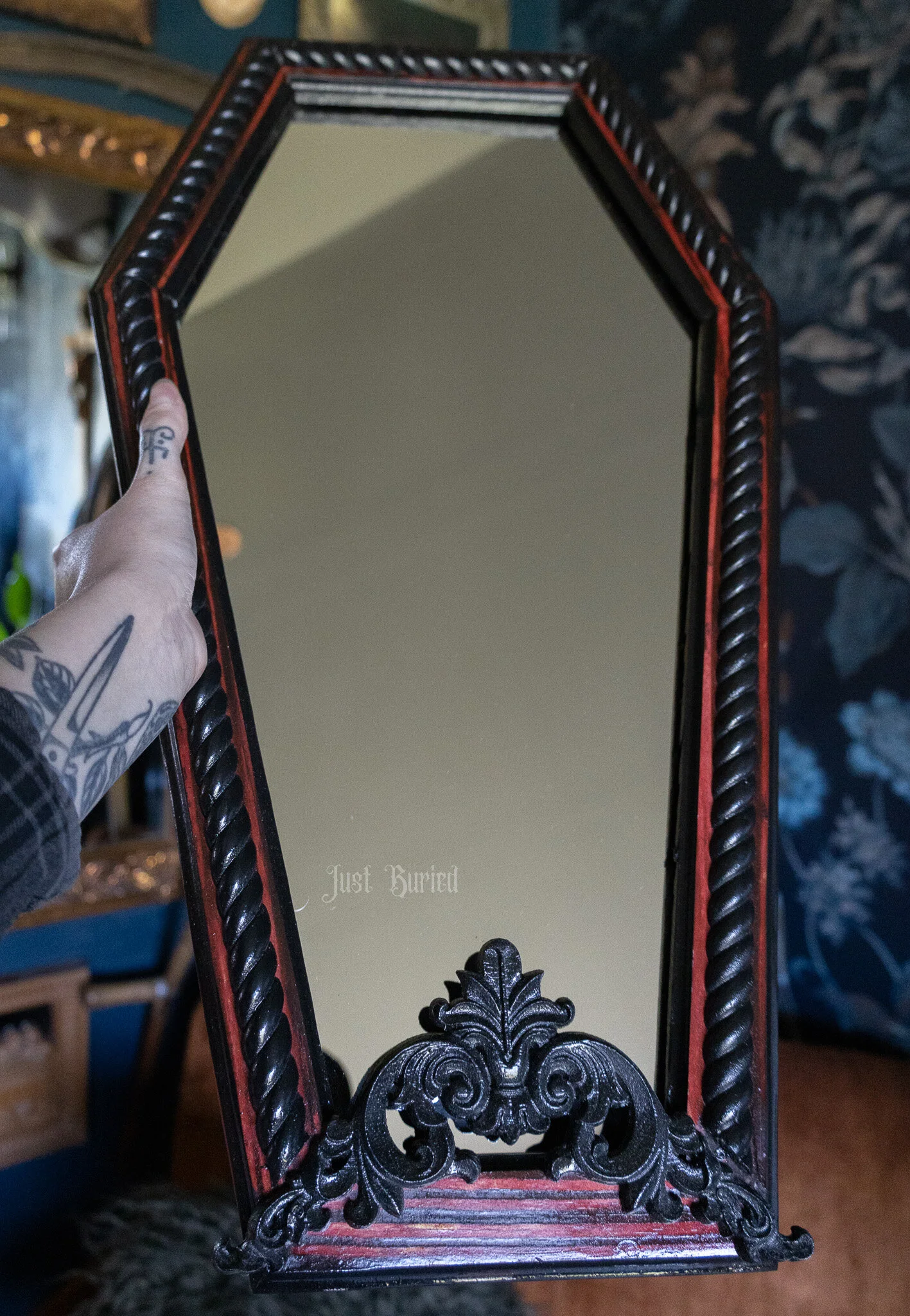 2 Ft Handmade Coffin Mirror, perfect for a unique, spooky wall accent in any tomb.