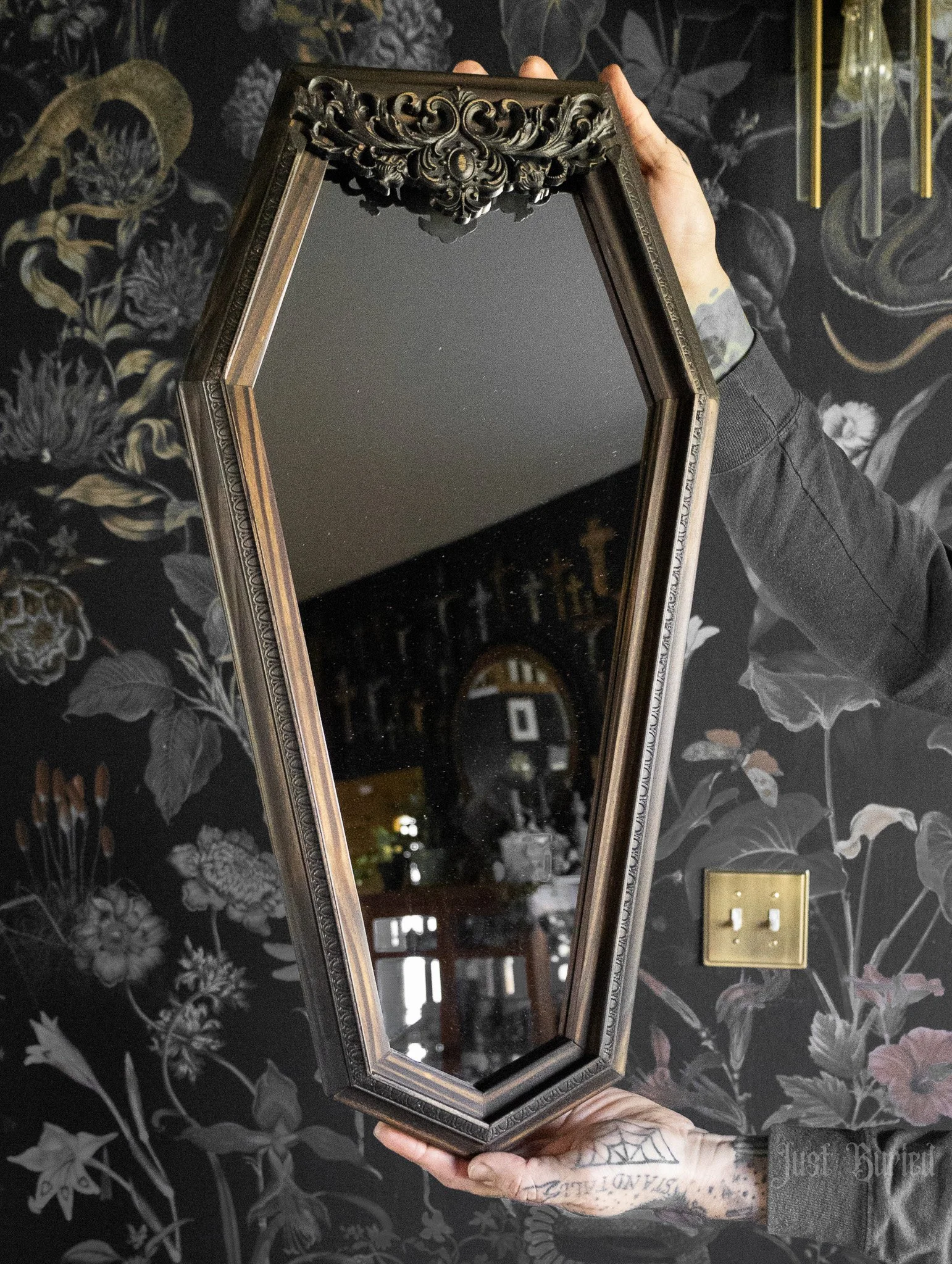 Shop The Finer Things In Death Categories: Mirrors, Cabinets, Shelves, & More READY TO SHIP CABINETS & SHELVES Coffin Curio Cabinet Mirrored Coffin Cabinet Vanity Coffin Shelf Combo Deals MIRRORS Signature Just Buried Coffin Mirrors 2 Ft Coffin Mirrors 3 Ft Coffin Mirrors 6 Ft Coffin Mirrors Mirrors, Cabinets, Shelves, & More / CABINETS & SHELVES / Coffin Shelf Mirrors, Cabinets, Shelves, & More READY TO SHIP CABINETS & SHELVES Coffin Curio Cabinet Mirrored Coffin Cabinet Vanity Coffin Shelf Combo Deals MIRRORS Plain 2 Ft Coffin Shelf -Multiple Variants- READY TO SHIP $105.00 Sold Out 3 Ft Coffin Shelf - PREORDER from $250.00 2 Ft Coffin Shelf - PREORDER from $105.00